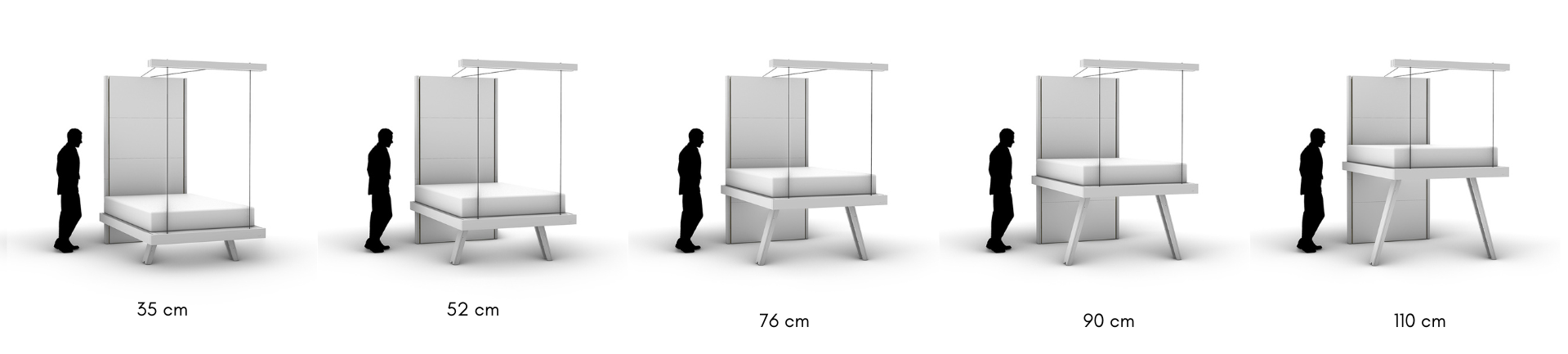 Hauteurs des pieds escamotables du lit bedUp®