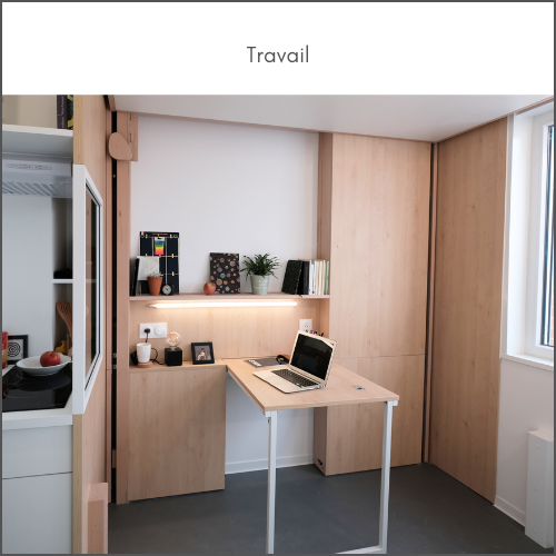 Avec une table intégrée , l’espace offre 3 fonctions supplémentaires: travail, repas, détente.