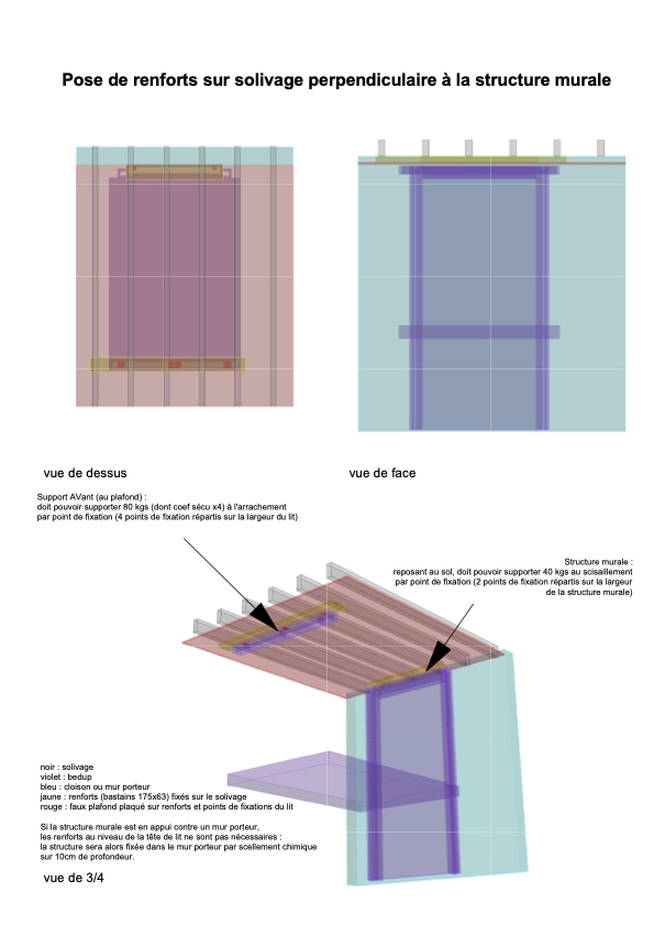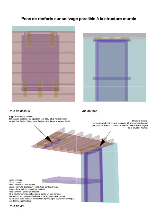Lorsque le plafond ne permet ces fixations, il convient de renforcer sa structure pour pouvoir supporter le lit escamotable au plafond bedUp®.